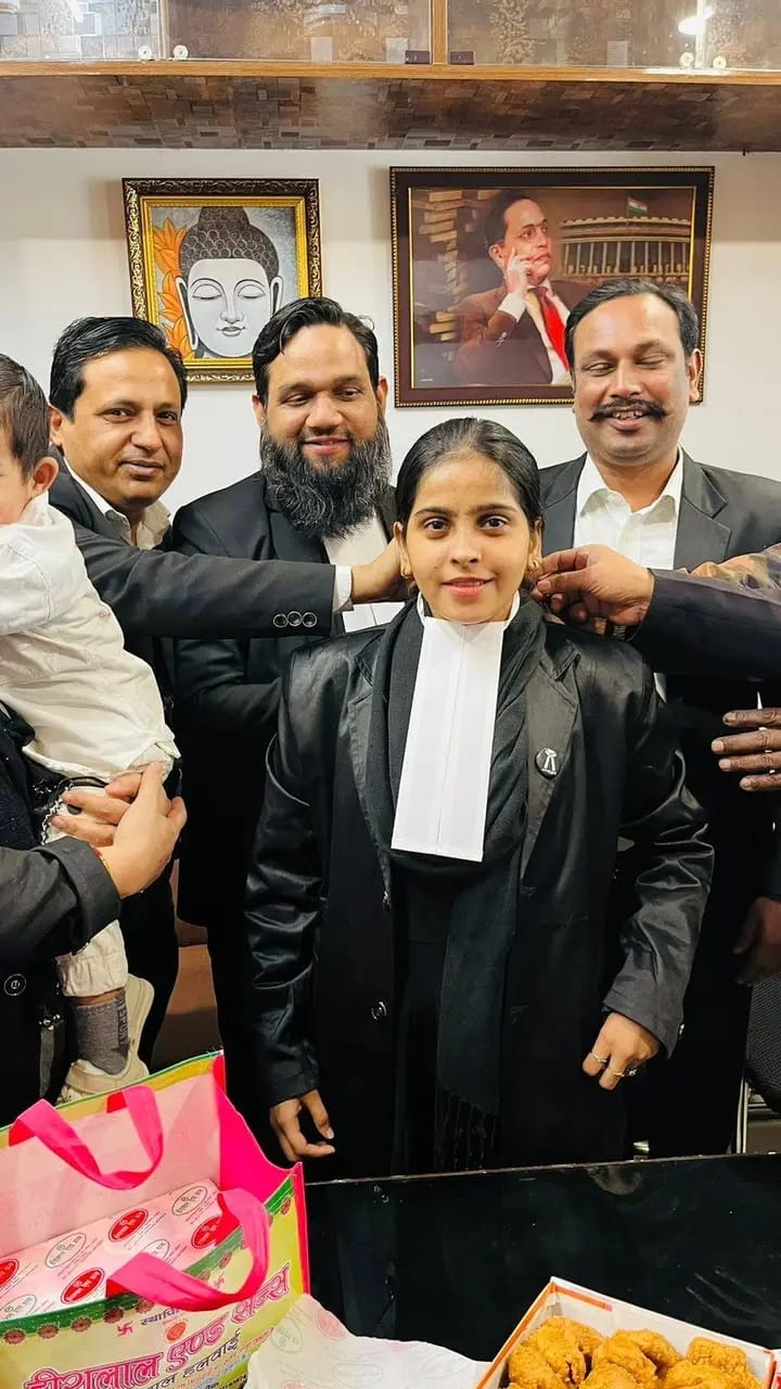 Sania becomes a lawyer. Behind Sania (person standing in front of Babasaheb’s pic) is Advocate Aftab Adv Aftab Fazil whose NGO space in Welcome Colony I had used to do my meetings. He has played a key role in mentoring Sania post her admission in the law College. Sania works with him now.