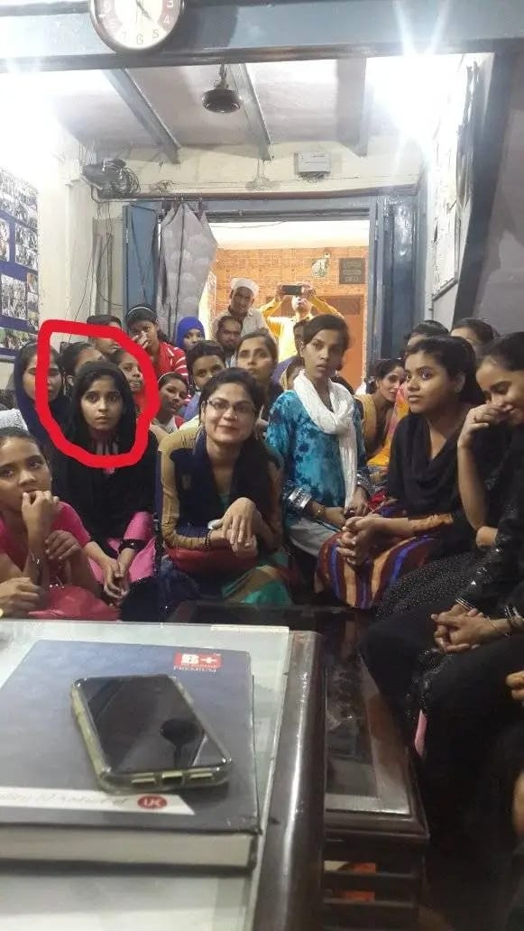 First meeting in the Community (Welcome Colony). Sania (encircled in red) is a participant. This is a general meeting.
