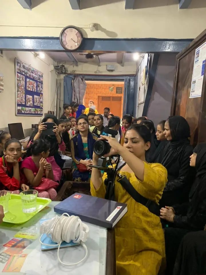 Third meeting: Motivational session facilitated by Ambarien Ambarien Alqadar . Sania’s mother and Aunt attend the meeting. Sania, with the phone in her hand.